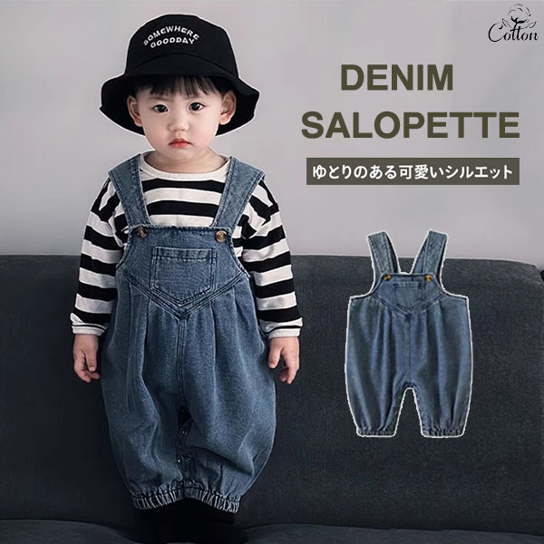 ベビー サロペット オールインワン ベビー服 オーバーオール ゆったり デニム ズボン 子供服 カバーオール カジュアル 男の子 女の子 赤ちゃん ジュニア