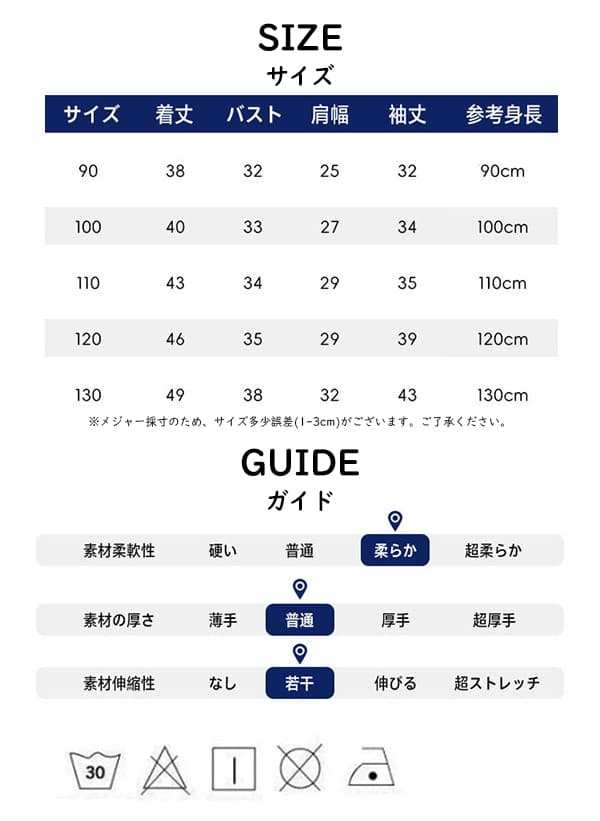 サイズ:90cm、100cm、110cm、120cm、130cm