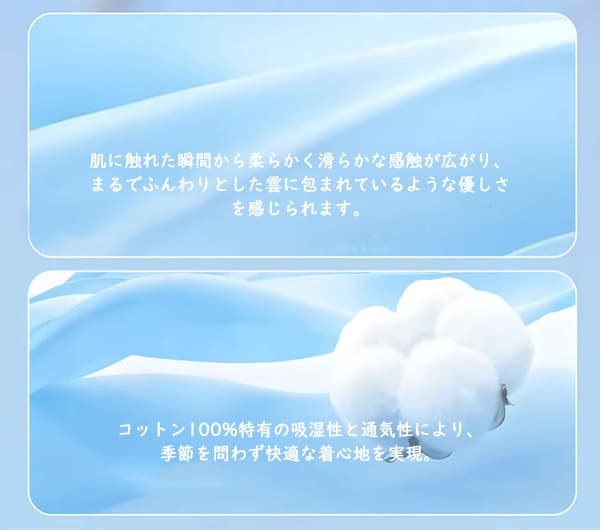 柔らかなコットン生地、心地軽やかでストレスフリー。