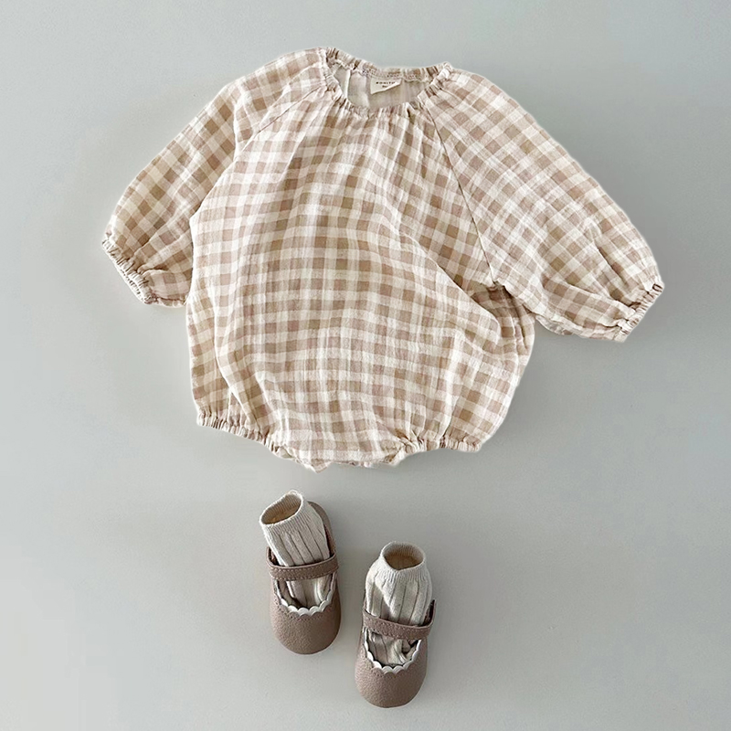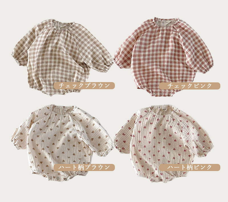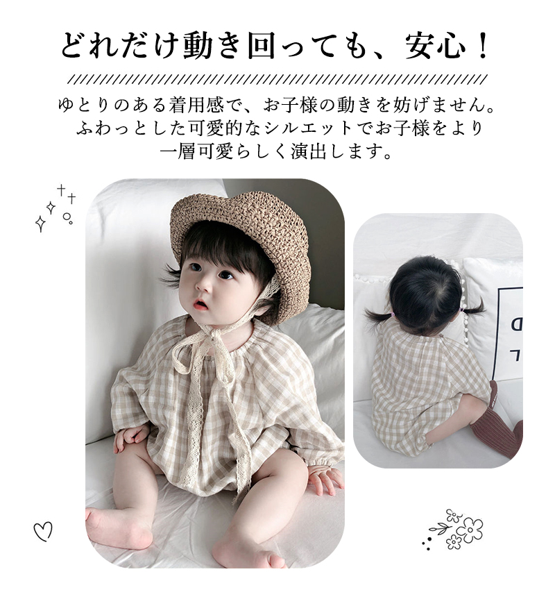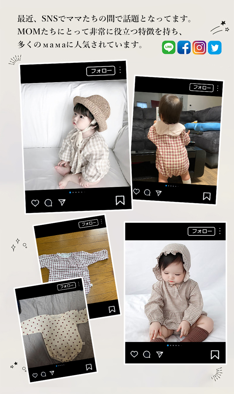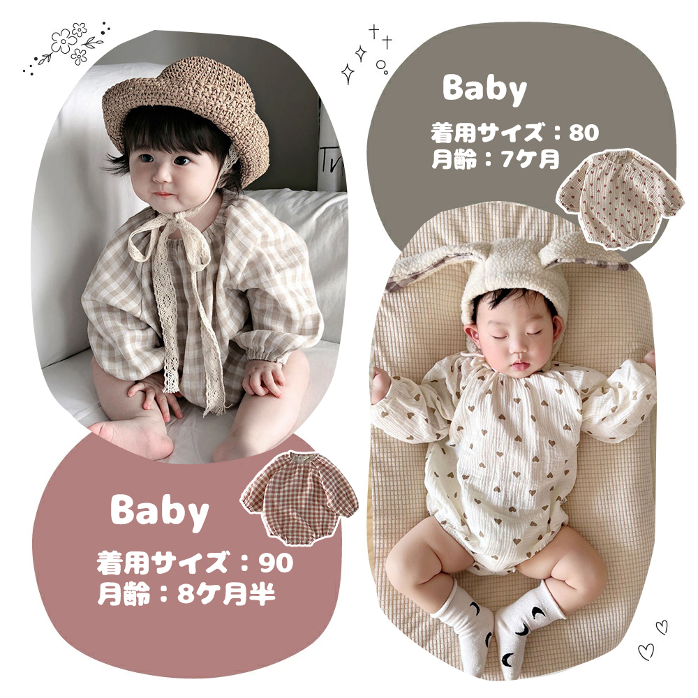 ロンパース ベビー服 キッズ 子供 長袖 カバーオール 男の子 女の子 新生児 赤ちゃん 綿 コットン 100% 韓国 キッズファッション 総柄 チェック柄 かわいい
