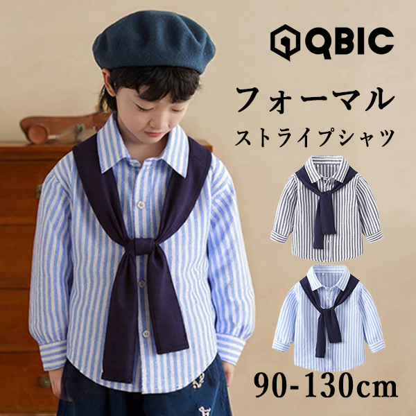 ベビー ストライプシャツ 長袖シャツ キッズ 子供 七五三 結婚式 発表会 入学式 入園式 フォーマル Yシャツ カジュアルシャツ 男の子 女の子 綿 コットン