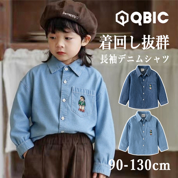 長袖 デニムシャツ ベビー キッズ 子供 コットン ポケット 刺繍 女の子 男の子 韓国 ブランド カジュアルシャツ おしゃれ 兄弟 お揃え 90 100 110 120 130
