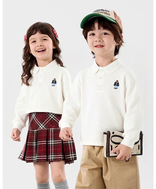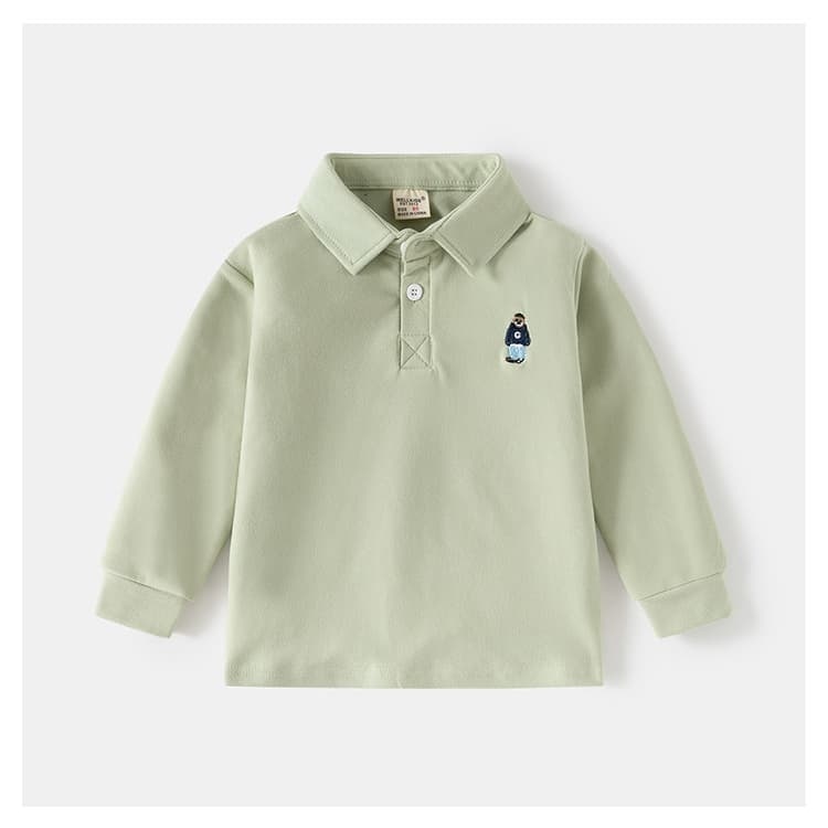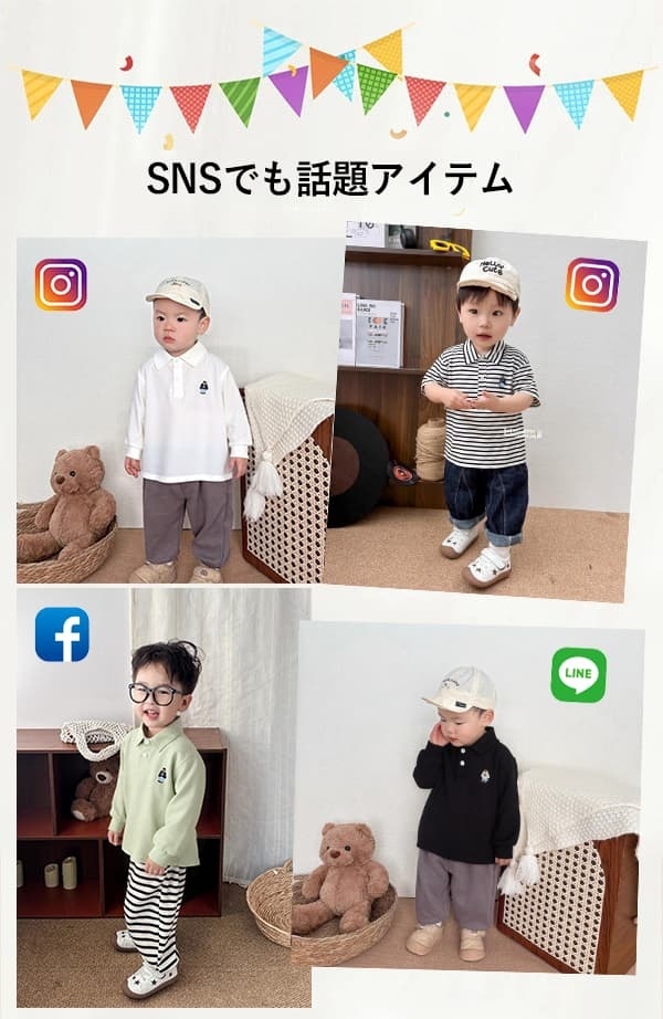 長袖 ポロシャツ ベビー キッズ 子供 くま柄 長袖Tシャツ 男の子 女の子 赤ちゃん 新生児 入園式 卒園式 通園 保育園 幼稚園 結婚式 七五三 記念日 お出かけ