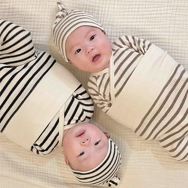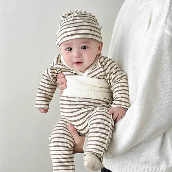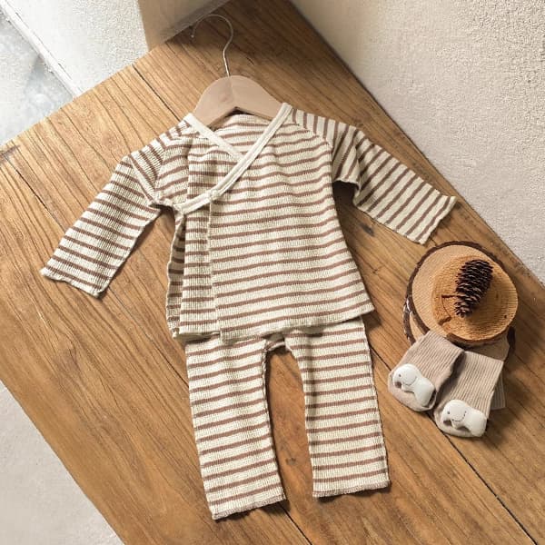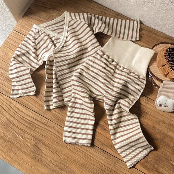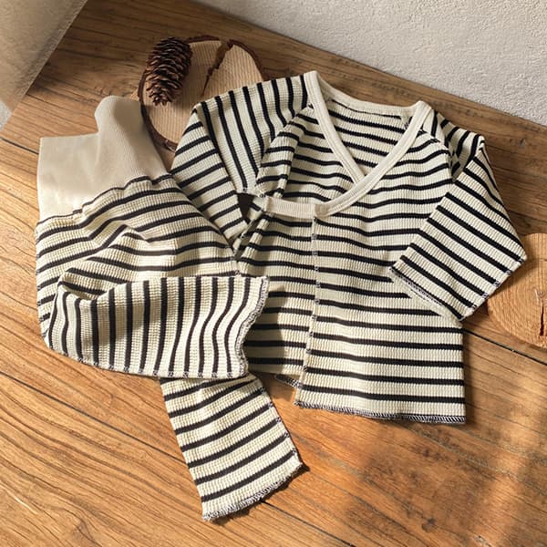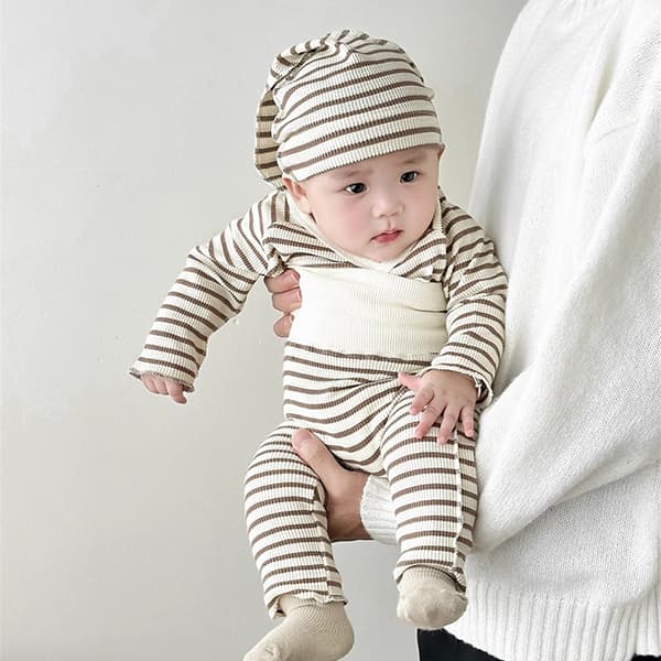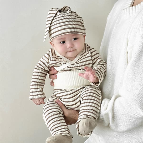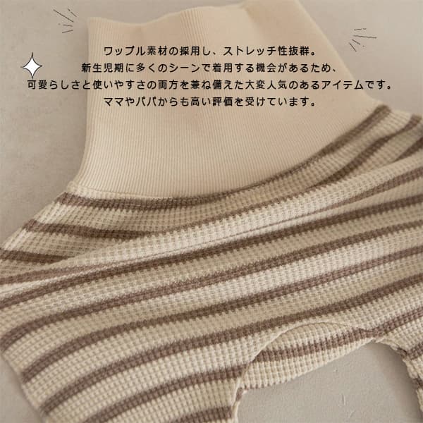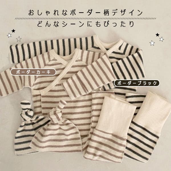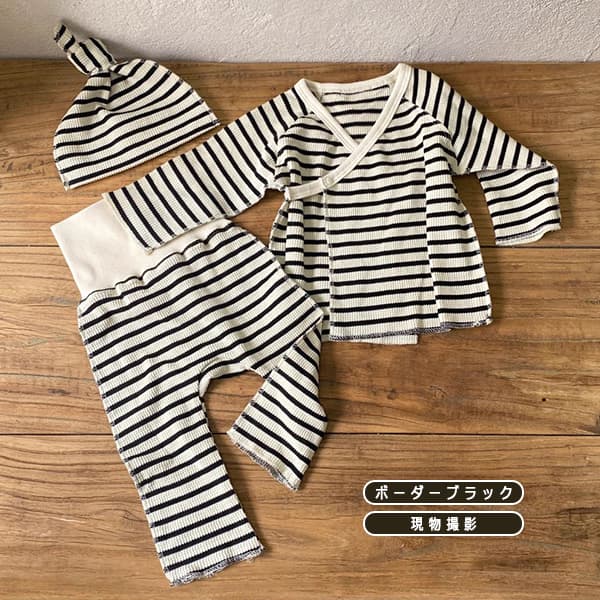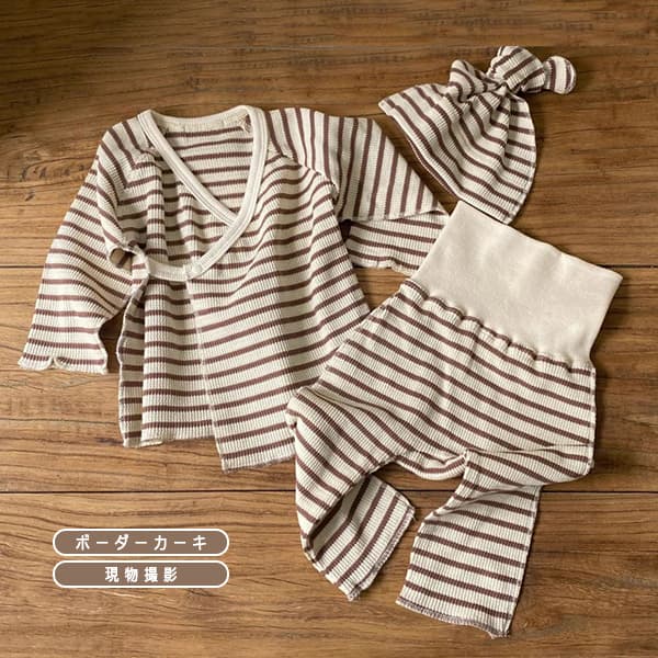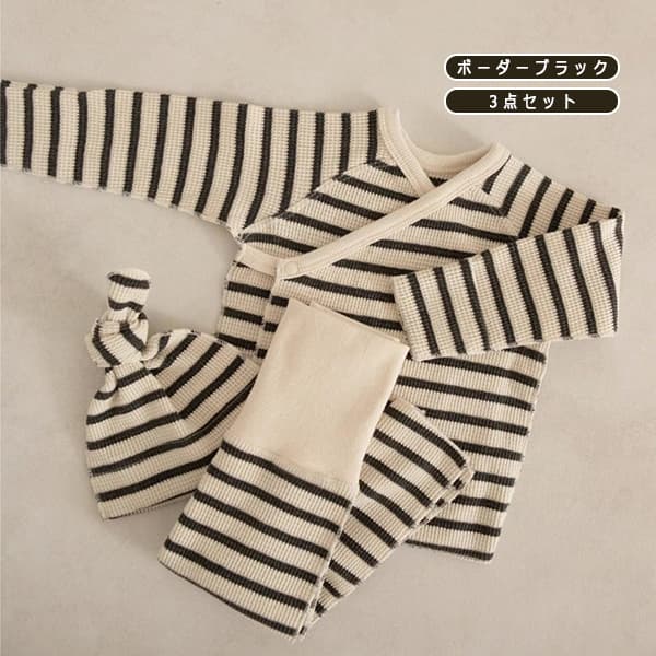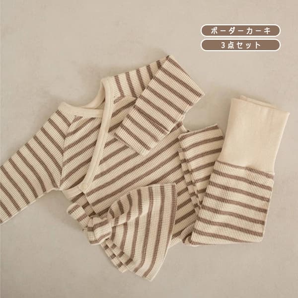 ワッフルボーダー柄・セットアップ(帽子付き・3点セット)