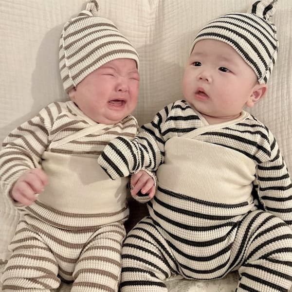 セットアップ ベビー キッズ 子供服 帽子付き 上下セット パジャマ 赤ちゃん 新生児 男の子 女の子 保育園 幼稚園 ワッフル ボーダー柄 出産祝い 姉妹 兄弟 韓国