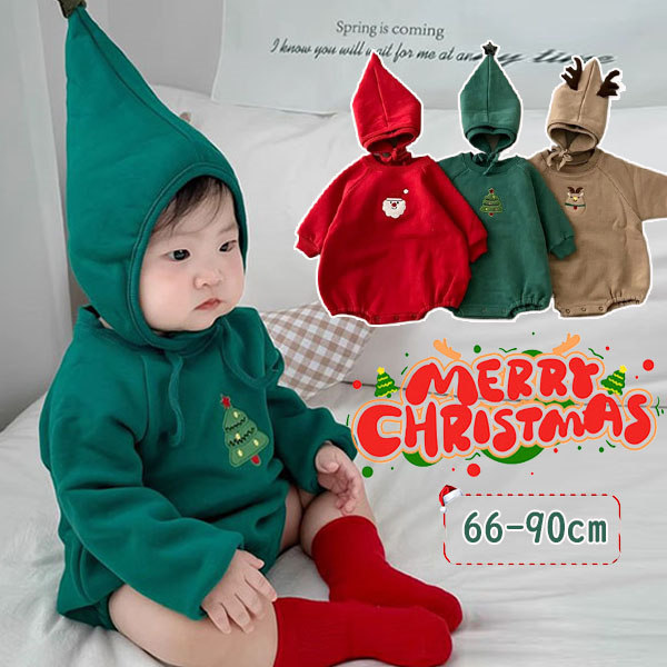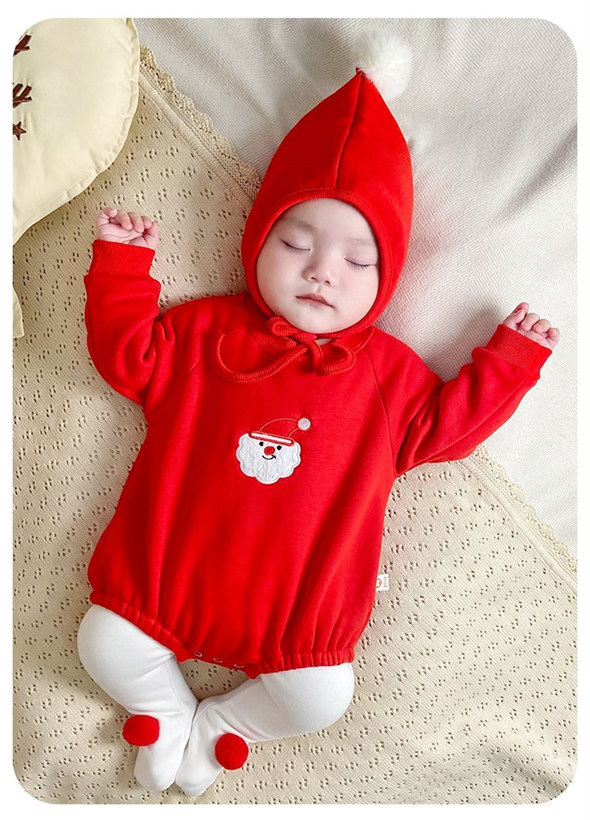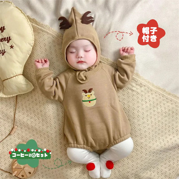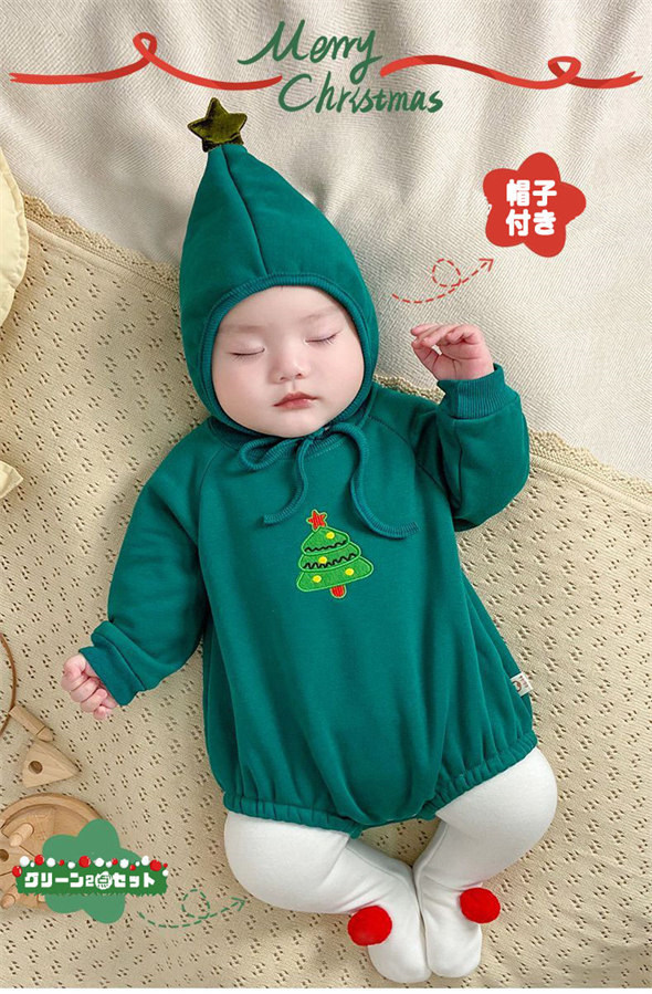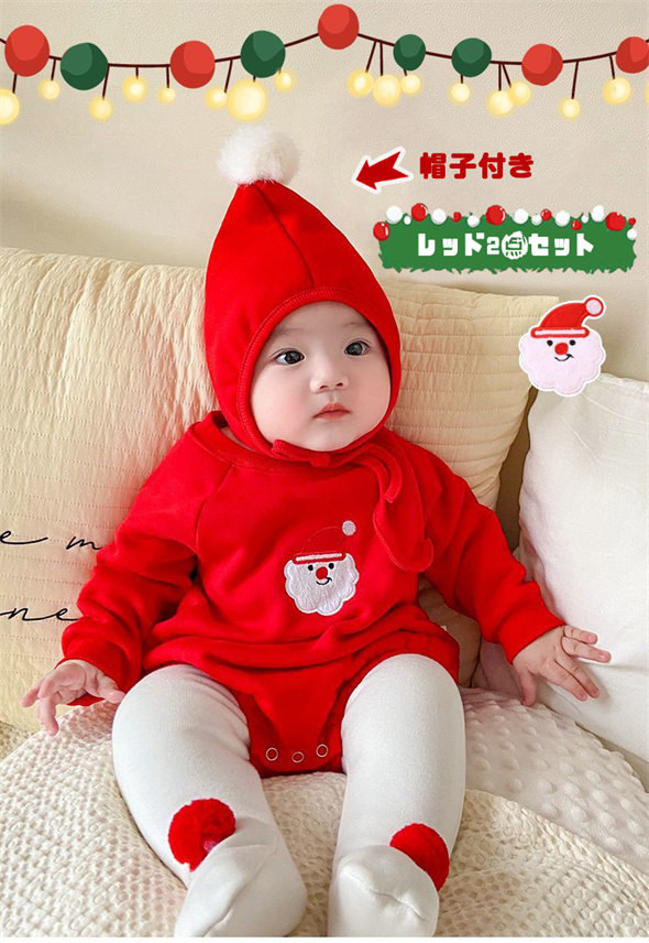 ロンパース 2点セット ベビー 子供 キッズ クリスマス コスプレ サンタ 着ぐるみ もこもこ 新生児 赤ちゃん 裏起毛 暖かい あったか 厚手 カバーオール パジャマ
