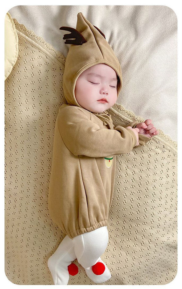 ・裏起毛ロンパース、帽子つき、頭から寒さに弱い赤ちゃんをしっかり守ってくれます♪
