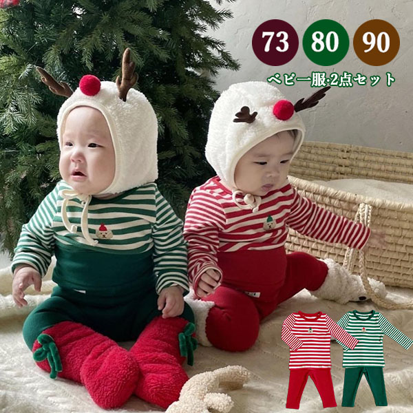 セットアップ ベビー服 子供 キッズ服 韓国 2点セット クリスマス コスプレ 仮装 衣装 サンタ コスチューム ボーダー柄 赤ちゃん ロンT レギンス 上下セット