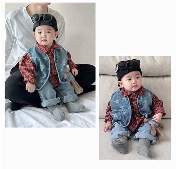 デニム セットアップ 上下セット ベビー服 子供服 キッズ服 男の子 女の子 長袖シャツ デニムベスト デニムサロペット デニムパンツ ジーンズ 3点セット