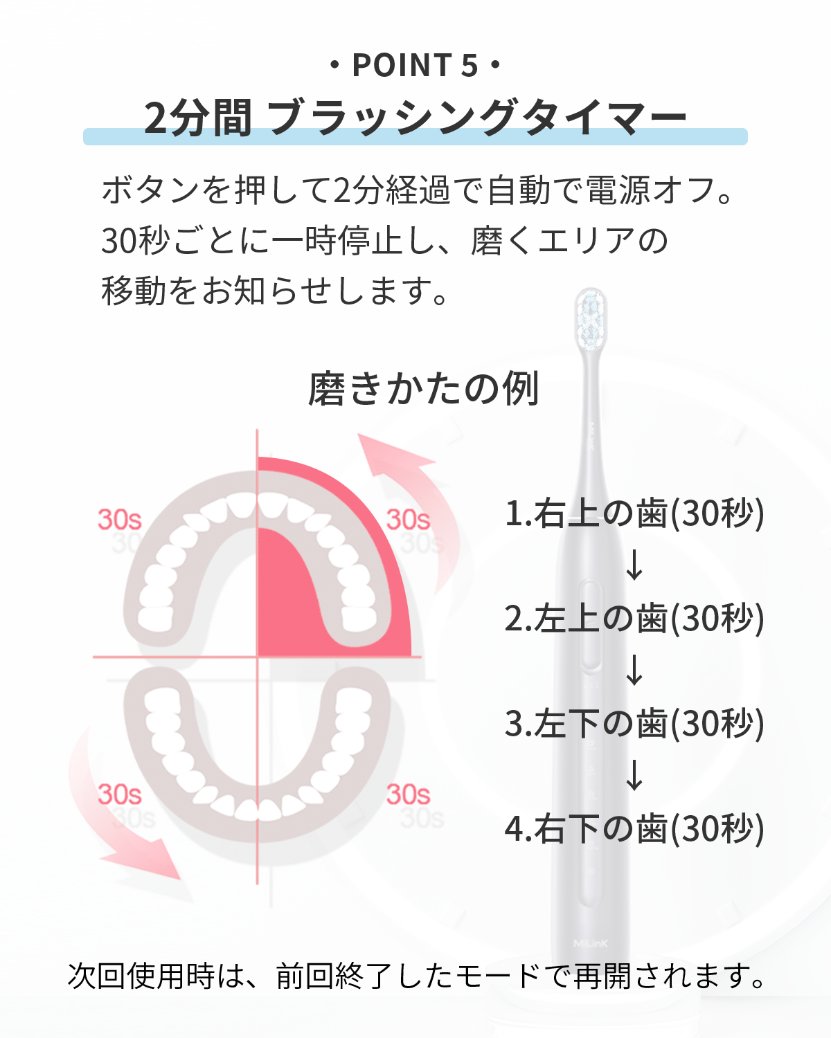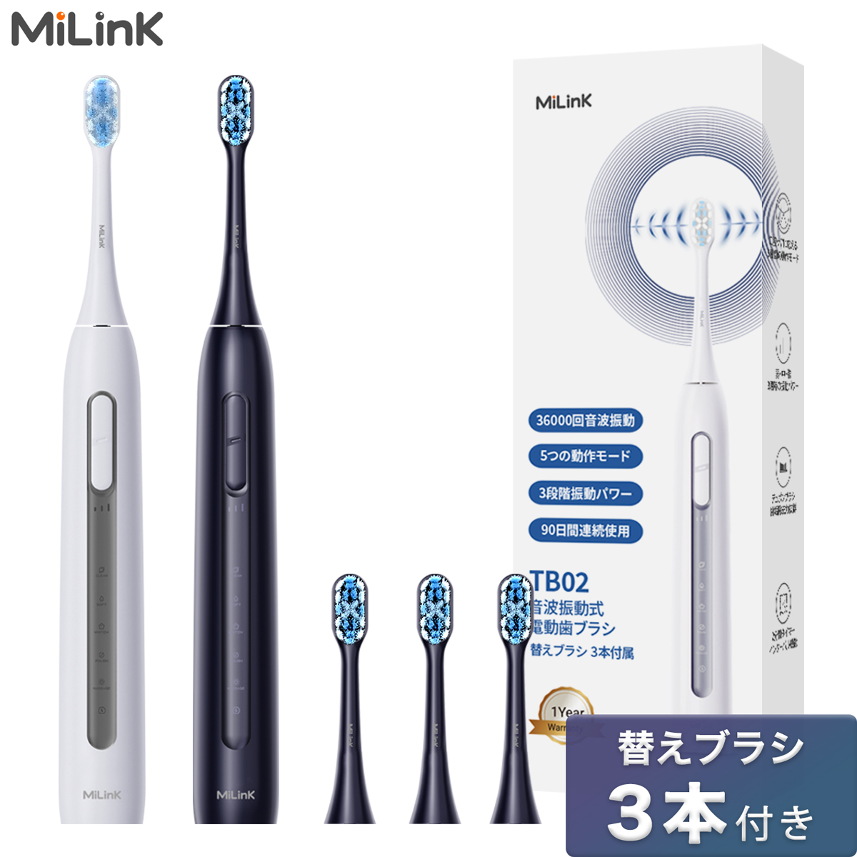 電動歯ブラシ リニア音波式電動歯ブラシ 5つのモード 防水 静音設計 タイマー機能 大人 子供 コンパクト やわらかめ デュポンブラシ MiLink TB02