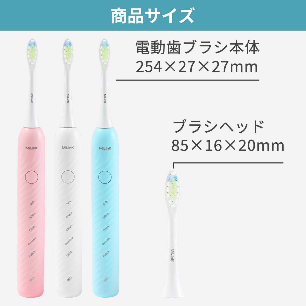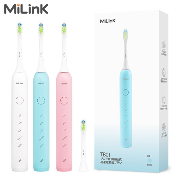 【ポイント15倍】電動歯ブラシ MiLink TB01 音波歯ブラシ 歯垢除去 歯石除去 充電式 5種類のモード IPX7防水 55dB 静音設計 タイマー機能 本体 替えブラシ