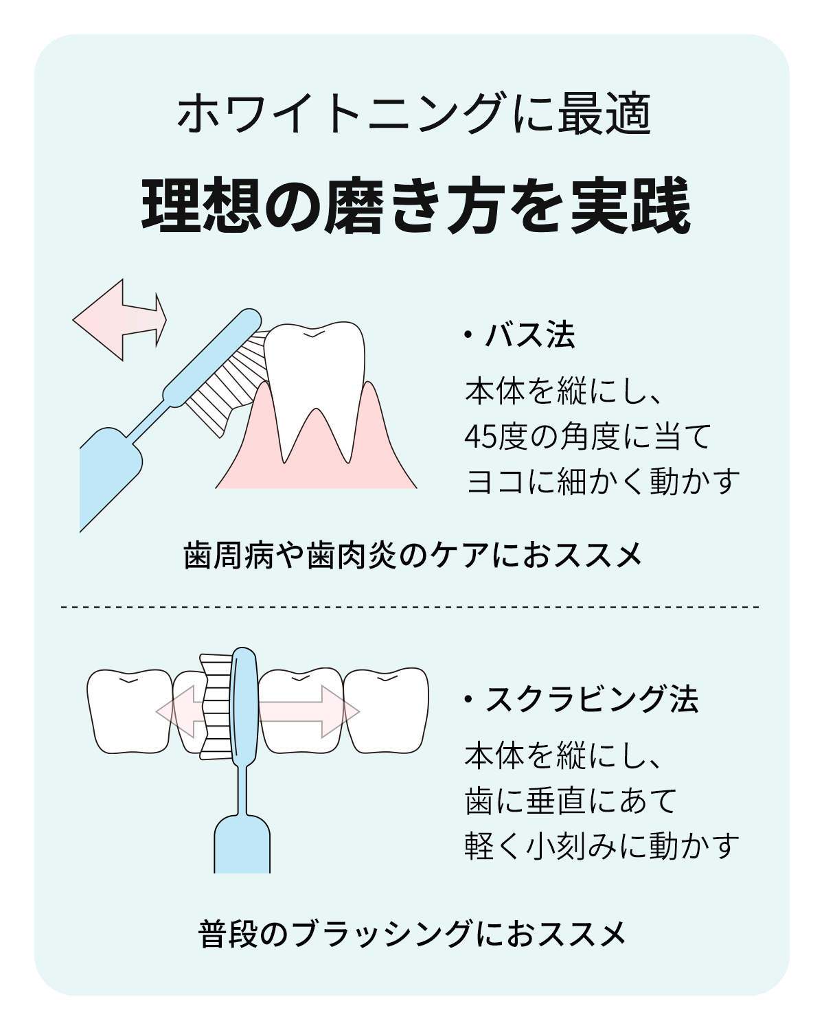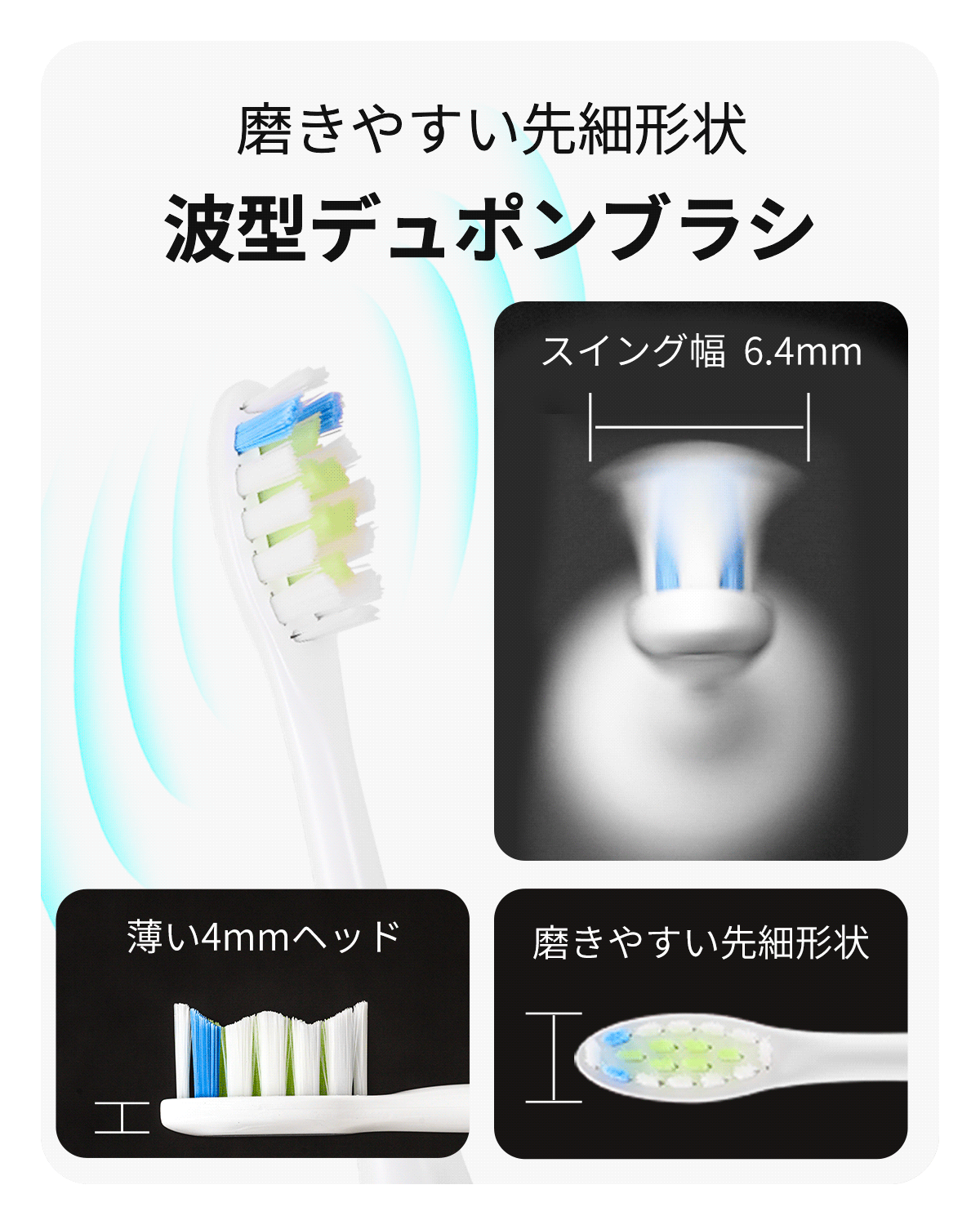 最大6.4mmの幅で動く横磨きは歯と歯茎まで一気に届き、磨き方の効率が大幅に向上。
