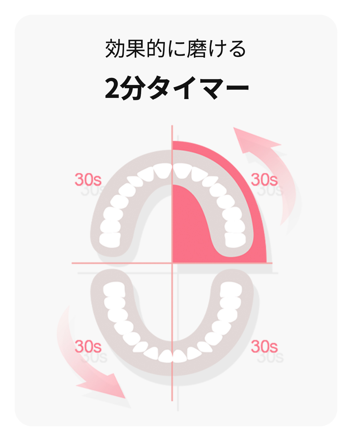 また、30秒ごとに区切りを知らせるインターバル機能を搭載し、2分で自動停止します。
