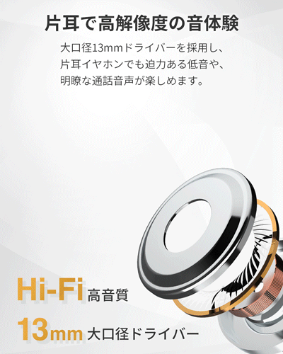 13mm大口径ドライバーを搭載し、片耳でも十分な音量と情報量を確保。