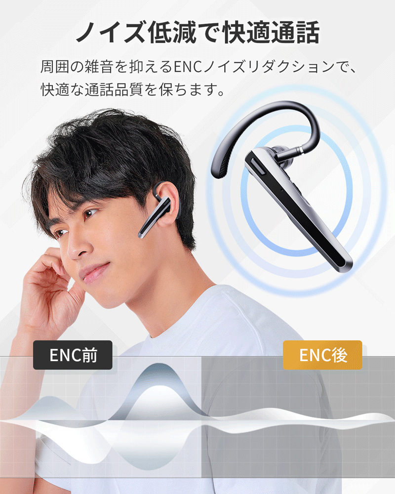 ENCノイズリダクション機能により、周囲の雑音を抑えてクリアな通話音声を送信。