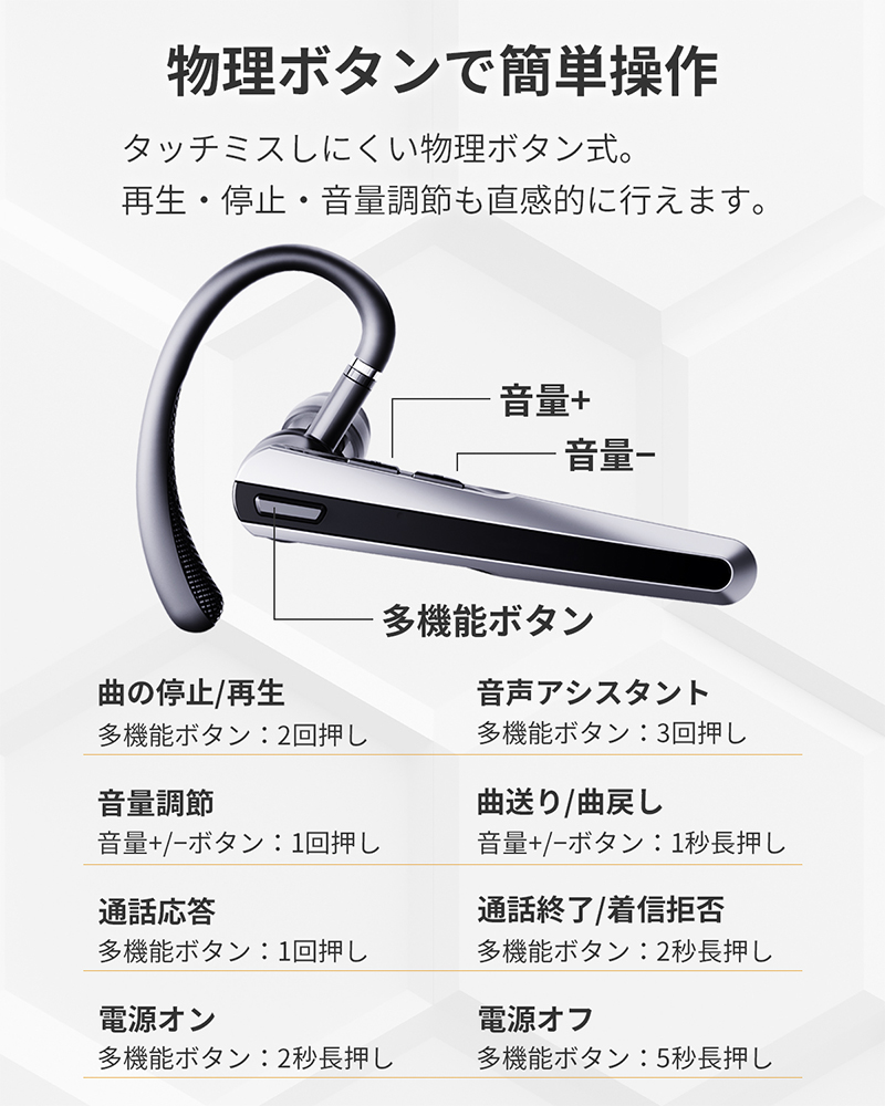 軽量設計で耳への負担を軽減し、長時間の使用でも違和感を感じにくい装着感を実現。