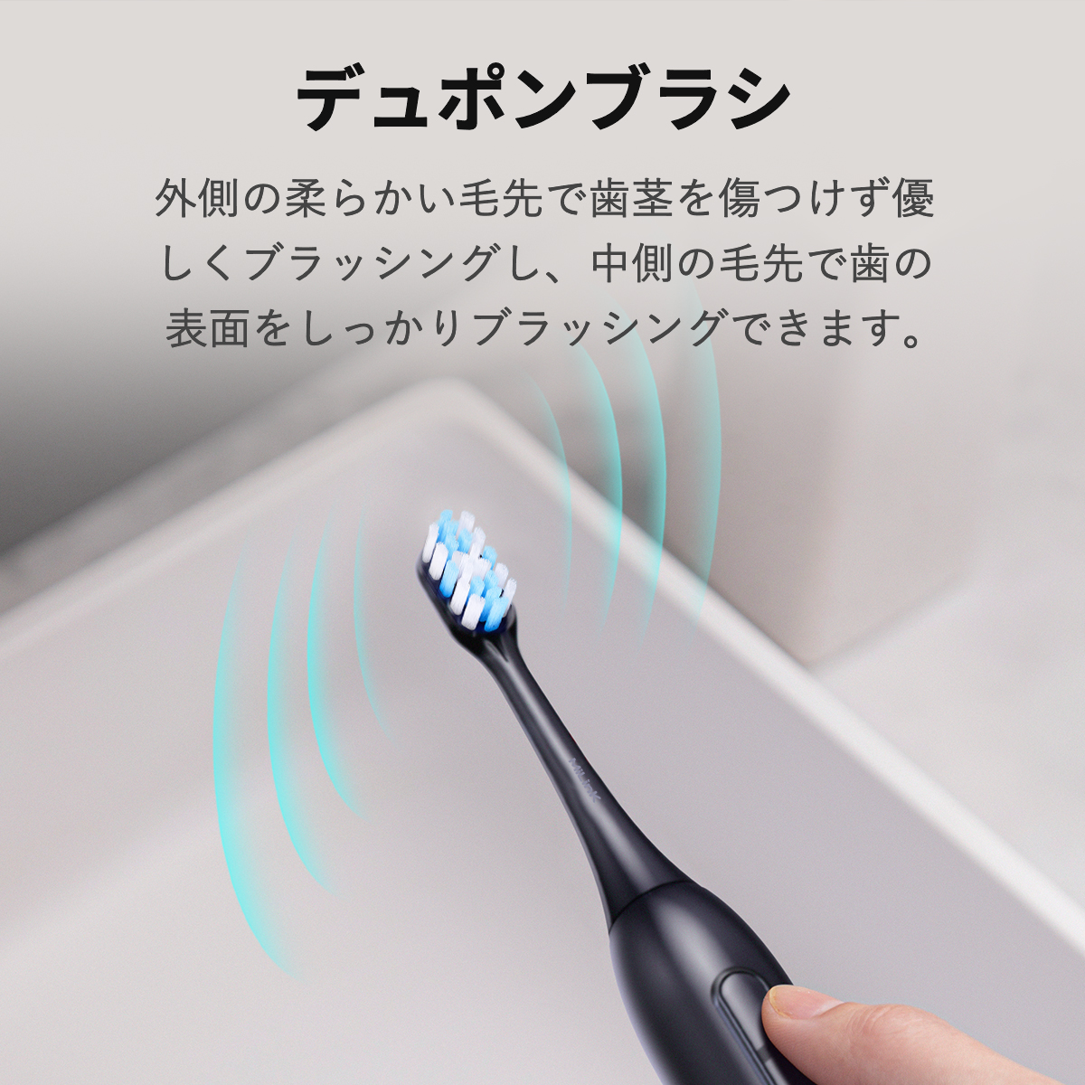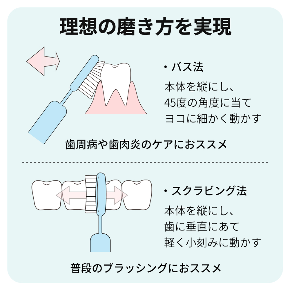 歯の凹凸に合わせて毛先がフィットするため、歯茎を優しくマッサージしながら、1本1本に丁寧に磨けます。