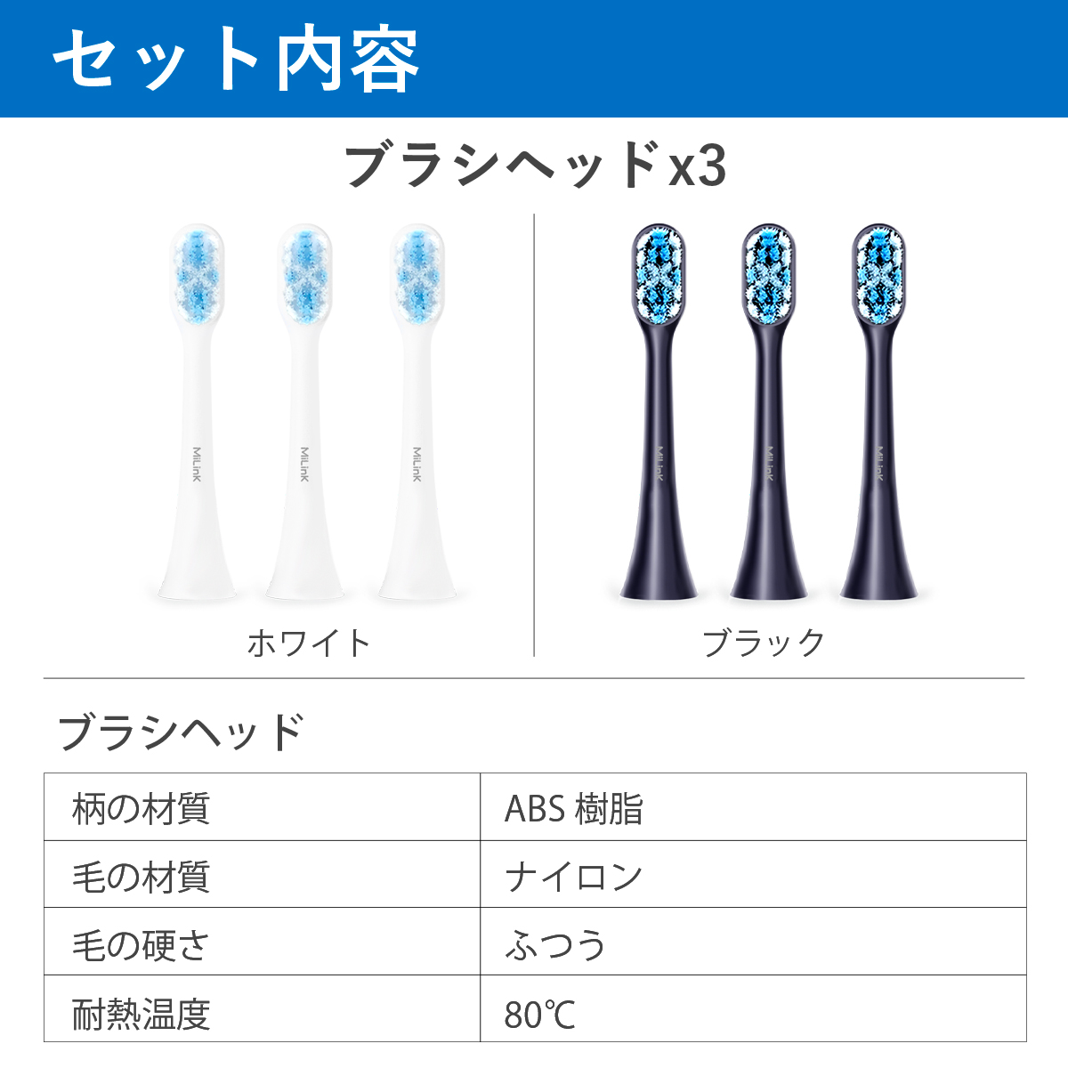 【タイムセール】替えブラシ 3本 セット MiLink TB02専用 歯ブラシ ヘッド 子供 家族 超音波 携帯 防水 IPX7 歯垢除去 口臭予防 旅行 デュポンブラシ