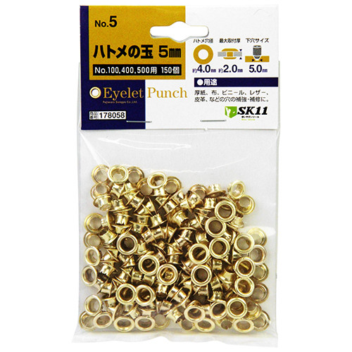 【機能】SK11ハトメパンチ(No.100・No.400)・SK11スナップハトメ両用パンチ(No.500)に使用可能です。