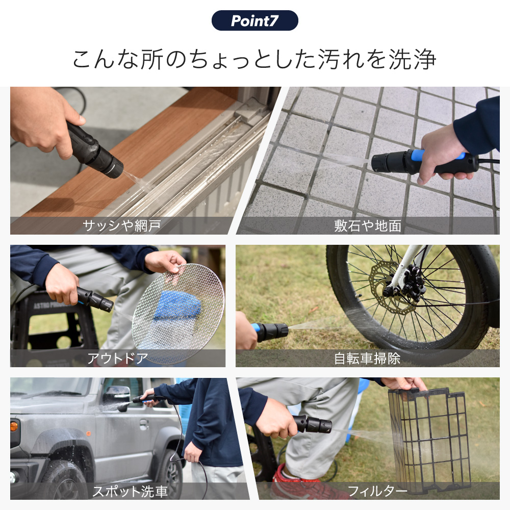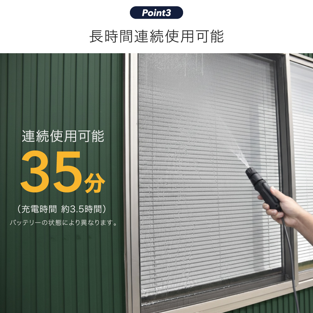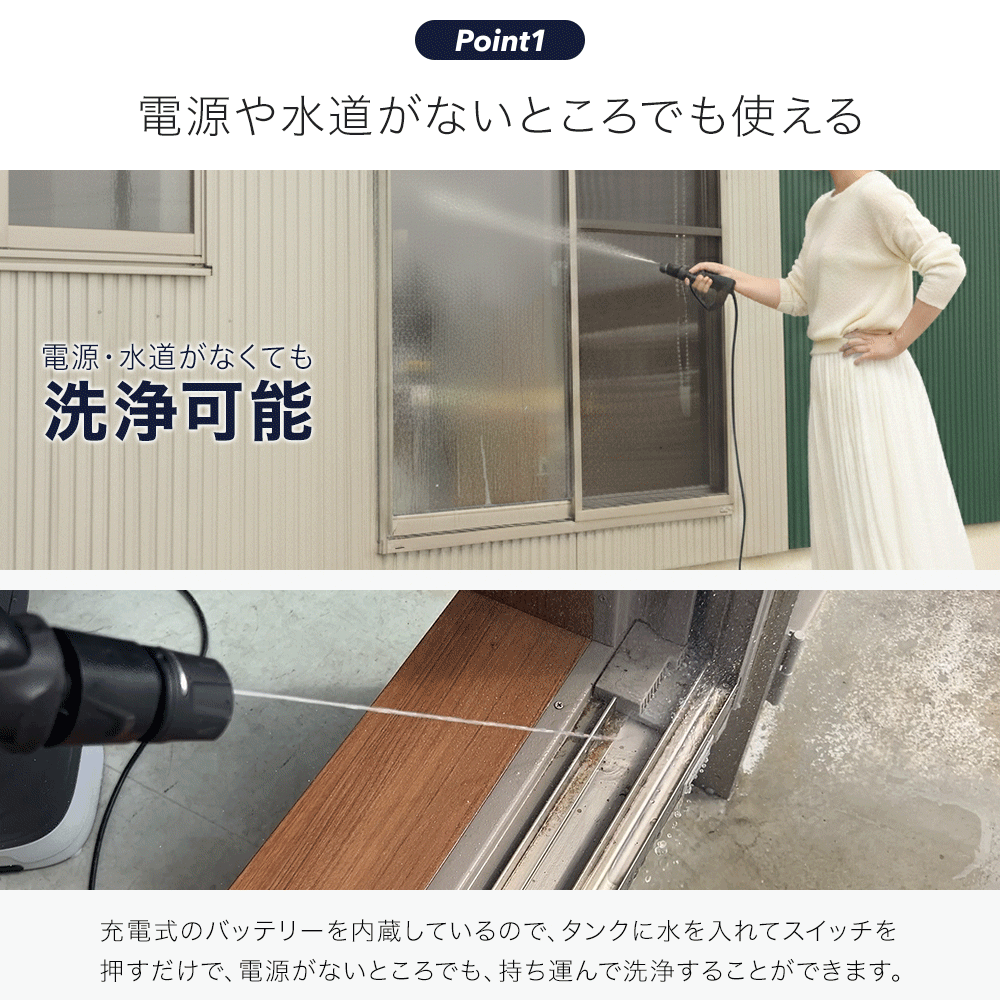 ・コードレス充電式で電源のないところでも使える洗浄機