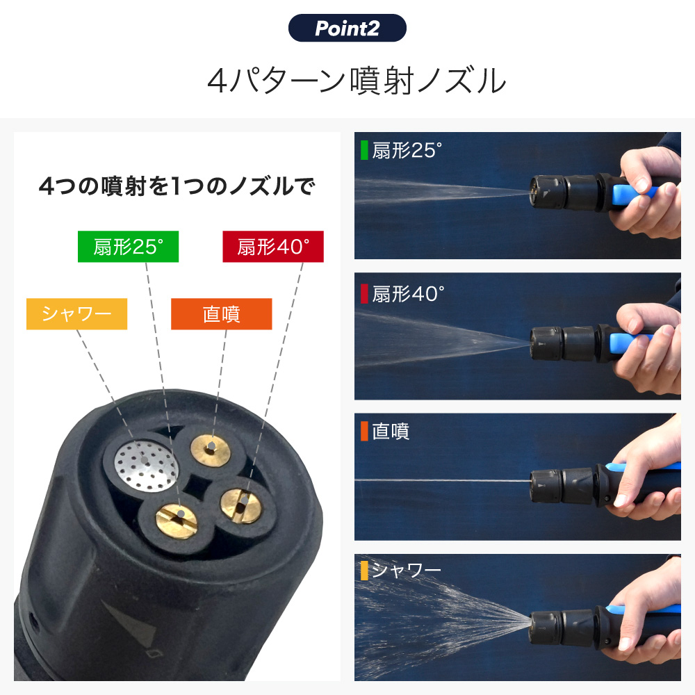 ・1つのノズルで4種類の噴射ができる
