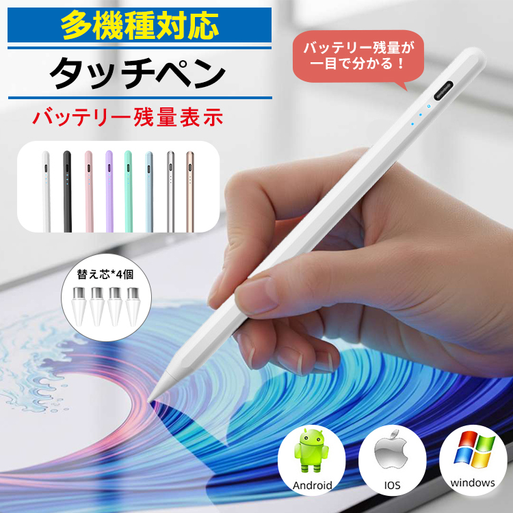 ★特徴★ イラスト、ゲーム、ビジネス、学業、タッチパネルなど、様々な用途に大活躍! BluetoothやAppなどの接続は一切必要ありません。電源ボタンをダブルタッチですぐに使用可能。 電池不要のUSB充電式は、モバイルバッテリーやUSB-ACアダプタから繰り返し充電可能。 ■材質: 超軽量アルミ素材。マットな質感で高級感があり指紋が付きにくい。 ペン先はApple Pencilと同じ高品質POM素材を使用。 ■充電時間「Type-C急速充電」: 30分(目安) ■連続使用時間: 12-18時間(目安) ■付属品: Type-C充電ケーブル、交換用ペン先*4個、日本語取扱説明書 ■サイズ: ペン先直径1.0mm、本体直径8.9mm、長さ167mm ■重量: 超軽量13g 【バッテリー残量LEDランプ搭載】 バッテリーの残量が一目で分かる指示ランプ搭載で、使用中のバッテリー切れの不安を解消。ストレス無く作業に集中できる。 【超高感度/超高精度/極細ペン先】 高性能センサーを採用で正確なタップと滑らかな操作を実現。線の途切れはもちろん、遅延・位置ズレもなく、ペン先感知機能が非常に繊細。どんどん書きたくなってしまう心地よい書き味に、誰もが虜になってしまうこと間違いなしです。 丸みのあるペン先は直径1.0mmと極細で、材質は純正のアップルペンシルと同じPOM素材を採用し、画面に傷つきにくい。手書きメモ、ツムツムなどのゲームまでいろいろな用途で大活躍できます。 【磁気吸着機能/マグネット内蔵でスタイリッシュに】 スタイラスペン本体にマグネットを内蔵。お好きなところにホールドできます。iPad Air 11/13インチ、Air5/Air4、iPad Pro 11/12.9/13インチ、mini7/mini6に乗せることもできます。 ※本機能は対応機種に限り使用可能。乗せての充電はできません、ご了承ください。 ※iPad/mini/Airの側面には丸みがあるため、iPad Proより吸着機能が低くなります。 ※指示ランプ説明: ボタンをダブルタッチでオンになり、青が点灯。もう一度タッチするとLEDランプが切れ電源オフ。 充電時は、赤が点灯。充電が完了するとライトが切れるか緑が点灯します。 ※自動電源OFF機能あり。5分間自動で電源が切れるので切り忘れても安心。 ※ご注意: ・iPadで本製品を使用いただく前に、Apple Pencilのペアリング(Bluetooth)を解除してください。 ・iPadで「設定」-「メモ」-「Apple Pencilのみで描画」を無効に設定してください。 ・画面に手が触れてしまうと正しく書くことができない場合がございますので、タッチペンのみ画面に触れるようご使用をお願い致します。 ・初期状態はバッテリー残量がゼロになっている場合がございますので、ご利用前にはフル充電してください。 |