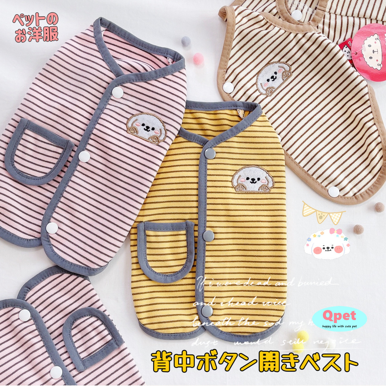 【当店人気No.1】爆買 犬 洋服 犬服 春秋冬 ベスト パーカー 背中ボタン開き ボーダー アップリケ ペット服 猫 小型犬 FS29 Qpet