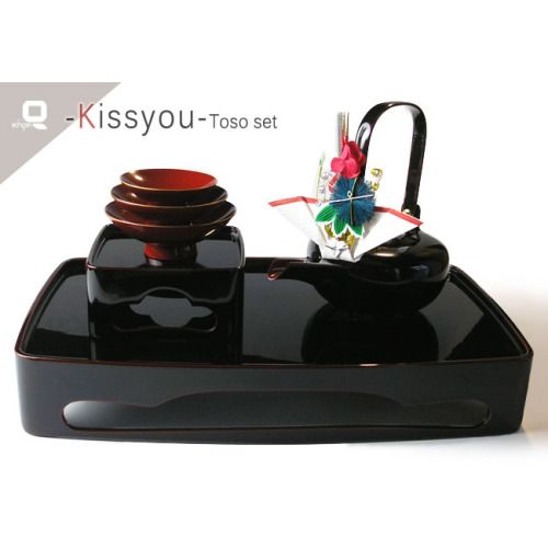屠蘇器 越前塗 吉祥松窓 屠蘇器 溜塗