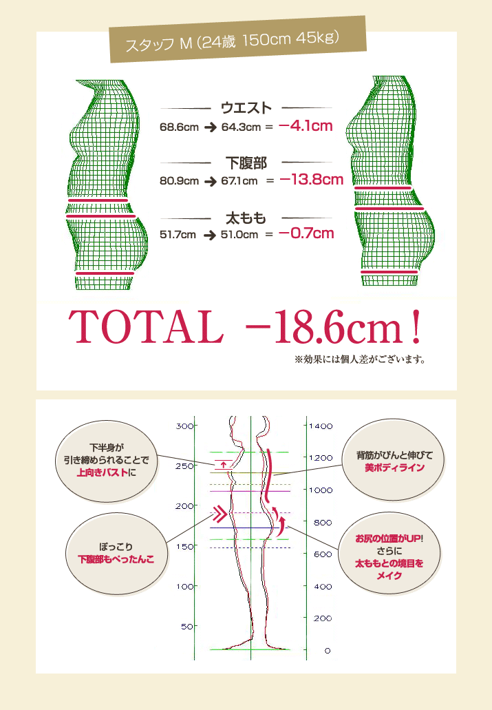 ・適応サイズであっても誤った方法で着用しますと、股下がフィットしなかったり、着用後に下がったりします。また、補正効果を実感しにくくなりますのでご注意ください。