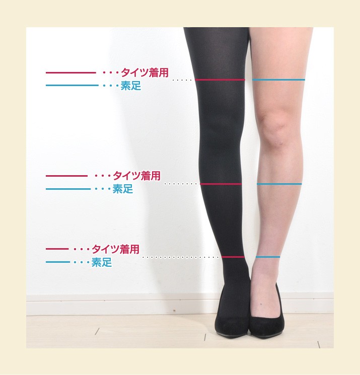 ・通常版の魔法のキュットスリム・タイツとデニール数、編み方が違いますため、肌触りに違いがございます。予めご了承ください。