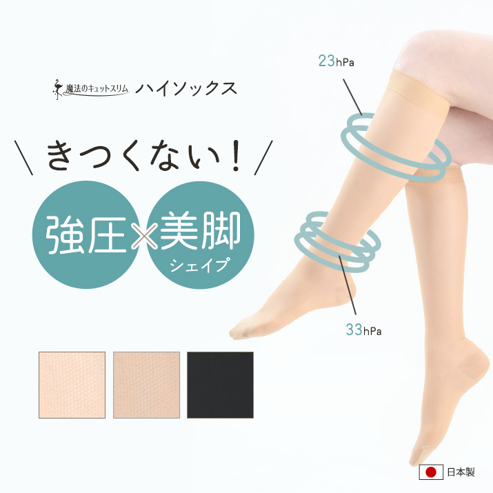 【本日ポイント10%還元】着圧ソックス 医療用 ベージュ 着圧ストッキング ひざ下 引き締め すっきり【魔法のキュットスリム・ハイソックス】