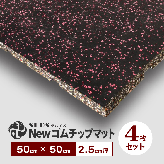 ゴムマット Newゴムチップマット 50 × 50cm ( 2.5cm厚 ) SLDS フロアマット スポーツジム フィットネス 筋トレ ペット用 介護施設 保育施設 4枚セット