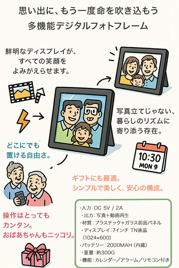 このデジタルフォトフレームなら、ただ写真を映すだけじゃなく、