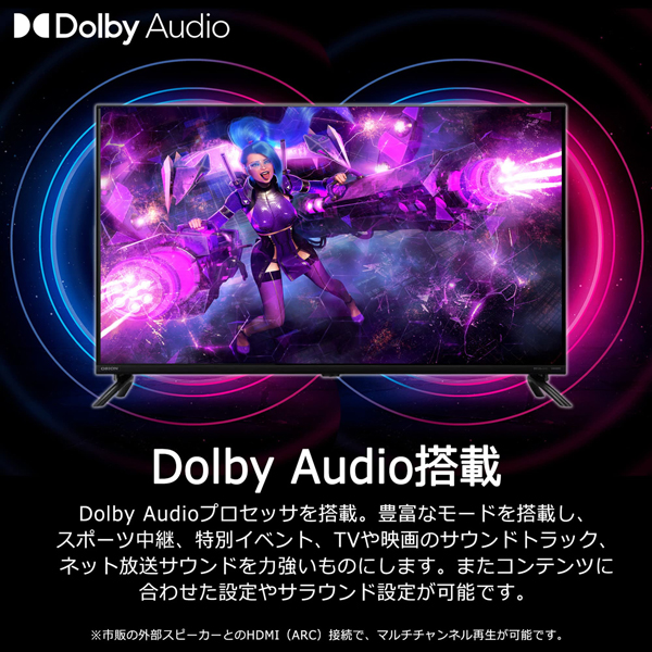 ■ 共通仕様・注意事項 * セット内容: リモコン(RR-010)、単4形乾電池x2、スタンドx2、スタンド取付用ネジx4、電源コード、取扱説明書、保証書 * 入出力端子: HDMI 1.4 x3(HDMI 1のみARC対応)、USB 2.0 x2、ビデオ入力x1、光デジタル音声出力x1、ヘッドホン出力x1、LAN端子x1 * 機能: HDR10 / HLG対応、Dolby Audio対応、Googleアシスタント、Chromecast built-in * 確認事項: 本製品に地上波・BS・CS放送のチューナーは搭載されておりません。インターネット接続環境がない場所では動画配信サービスの利用はできません。 |