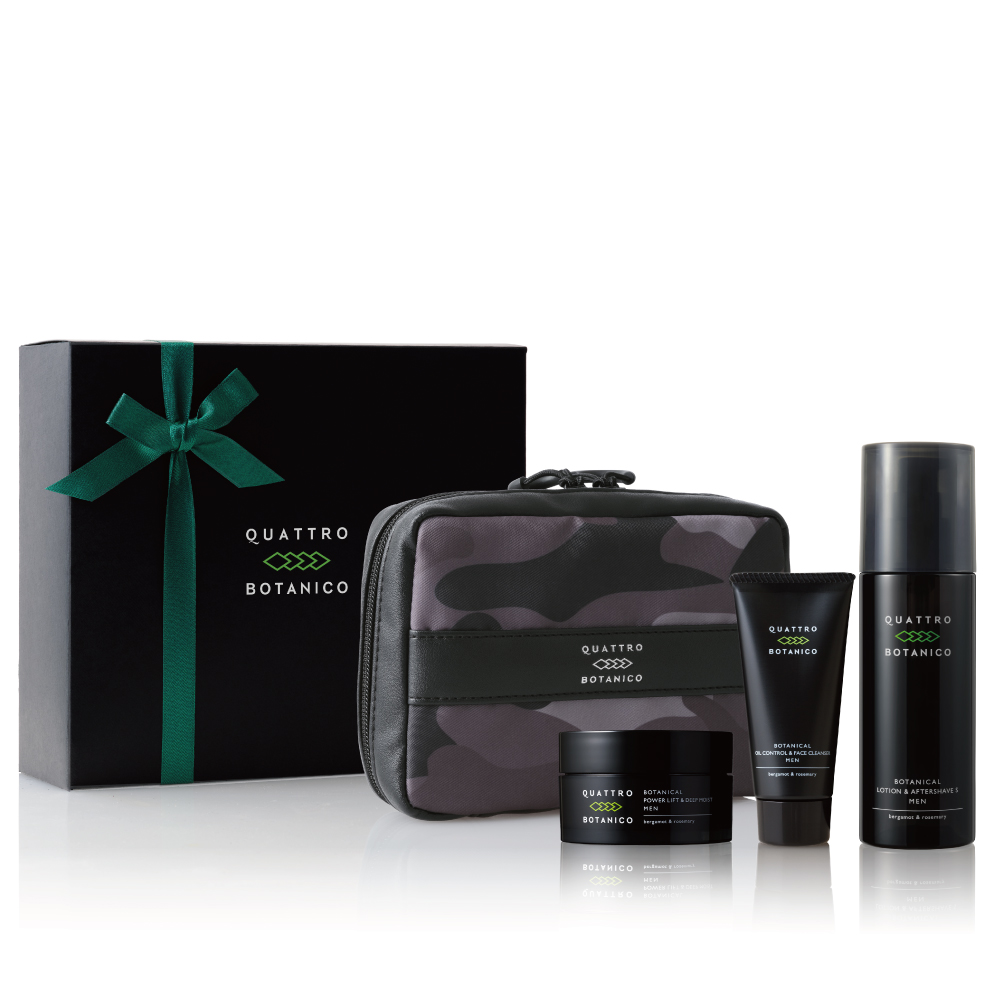 メンズ オールインワン化粧水 洗顔料 クリーム ポーチ付 ギフト セット 箱入り・紙袋付 クワトロボタニコ クリスマス 誕生日プレゼントなど男性への贈り物