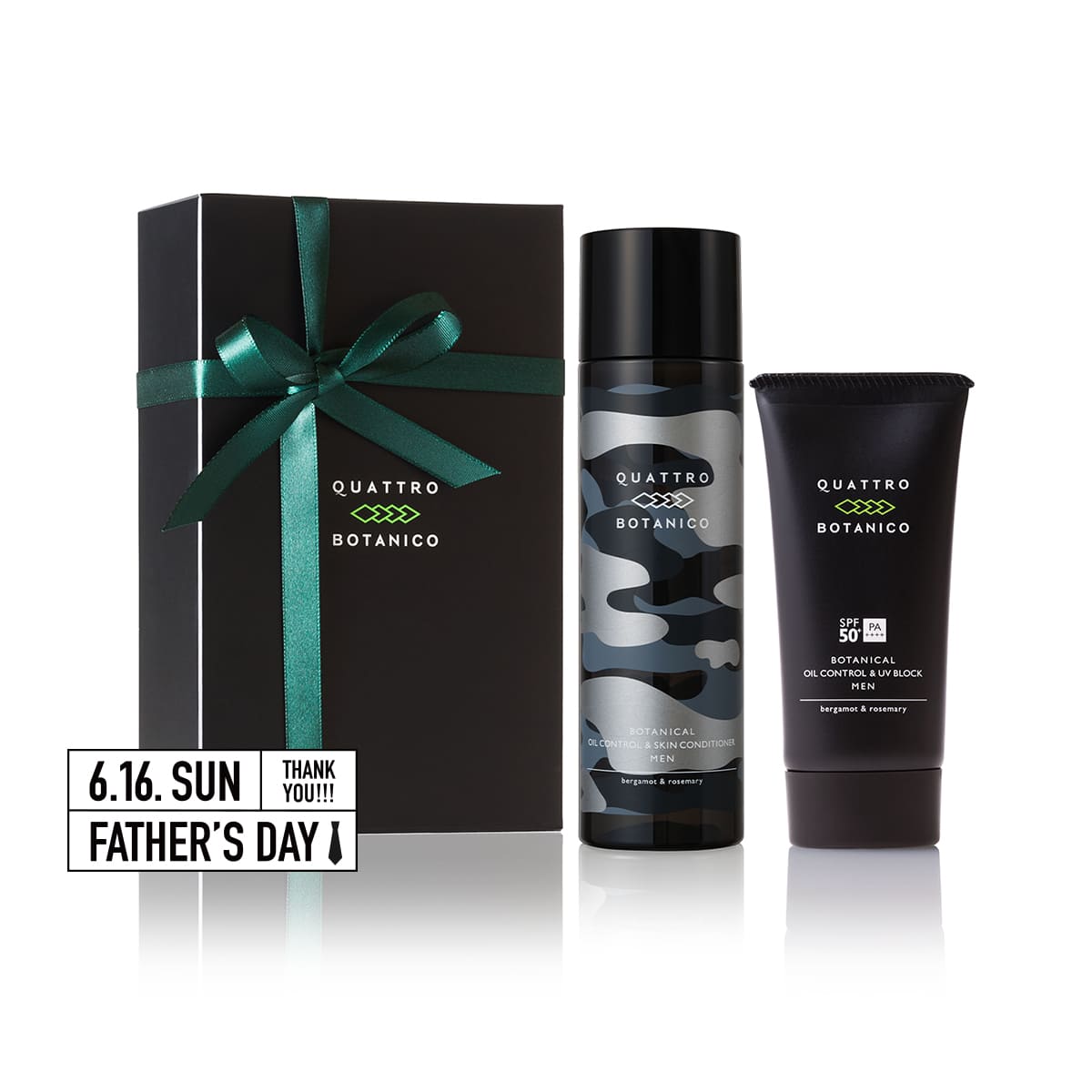 化粧水 オールインワン(脂性肌) 日焼け止め 2点セット メンズ 男性用 クワトロボタニコ ギフト 誕生日プレゼント クリスマス プレゼント 紙袋付き