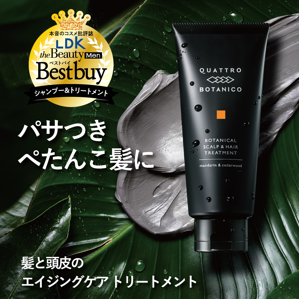 髪と頭皮のトリートメント メンズ用 クワトロボタニコ ボタニカル スカルプ & ヘア トリートメント パサつき、ぺたんこ髪に 30代・40代の男性用 洗い流す