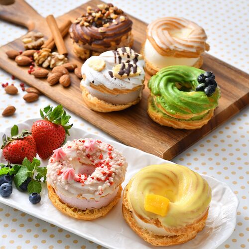 リング状のおしゃれなシュー・パリブレストにアイスをサンド。チョコがけやトッピングをほどこし見た目も華やかなアイスギフトです。