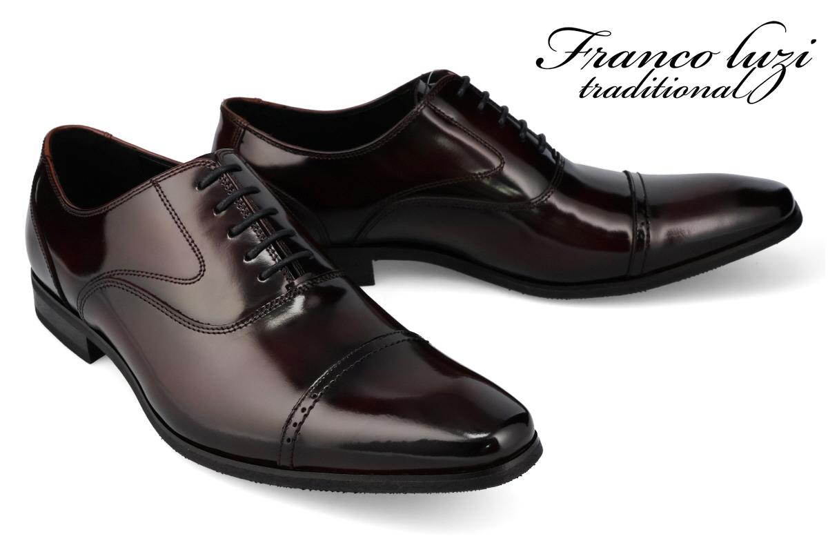 つま先のステッチが個性的な内羽根ストレートチップタイプ。