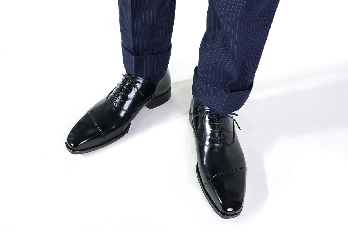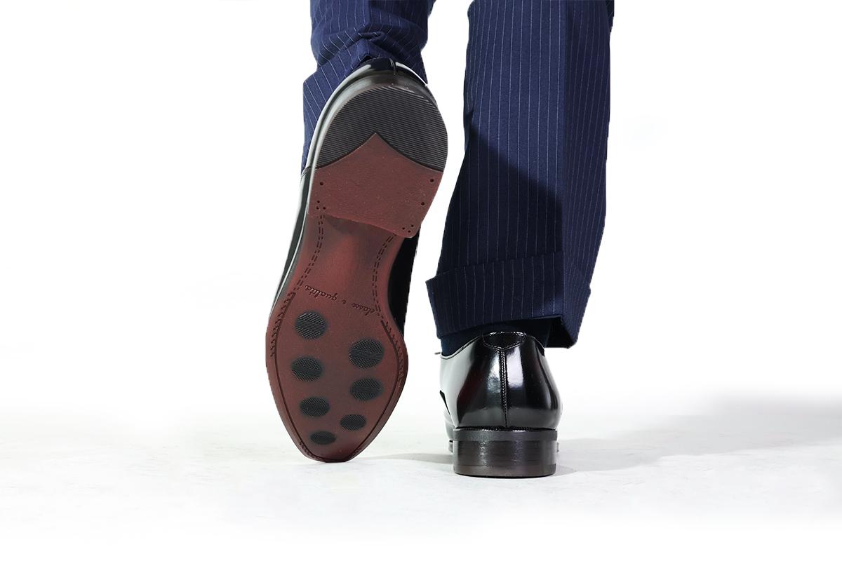 トウ部分を斜めにカットした珍しいオブリークトゥのストレートチップ。