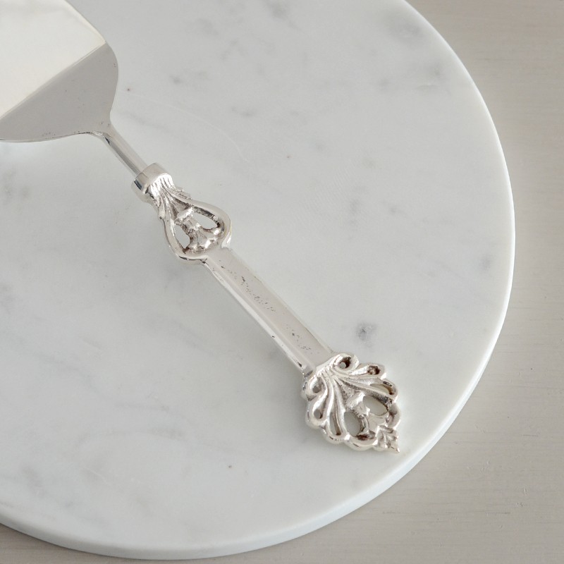 | Queen Ann-クイーンアン- オリジナルシリーズ。 おしゃれな装飾のシルバーケーキサーバー。 しっかりとした重厚感のあるデザインでホールケーキのご使用に丁度良いサイズ感です。 ティーパーティーなどおもてなしにもおすすめです。