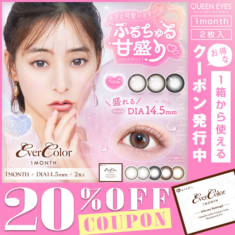 【クーポン利用で20%OFF】【シリコン素材】エバーカラー シリコーンハイドロゲル UV マンスリー (1箱2枚)( カラコン エバーカラー 1ヶ月 度あり 度なし )