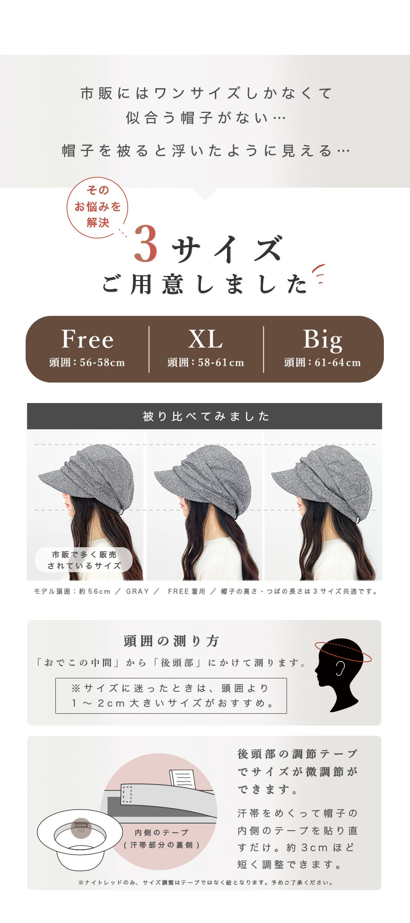 | フリーサイズ | 56-58cm | 約13cm | 約7.5cm |