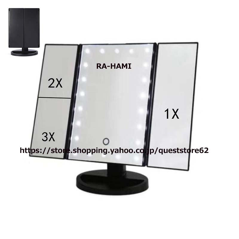 卓上ミラー 鏡 女優ミラー LED ライト 付き 三色調光 メイク おしゃれ かわいい 折りたたみ 拡大鏡 LEDライト付き スタンドミラー トレー 鏡