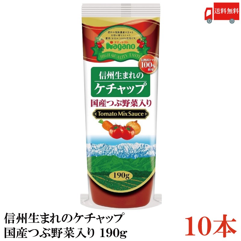 ナガノトマト 信州生まれのケチャップ 国産つぶ野菜入り 190g ×10個 送料無料