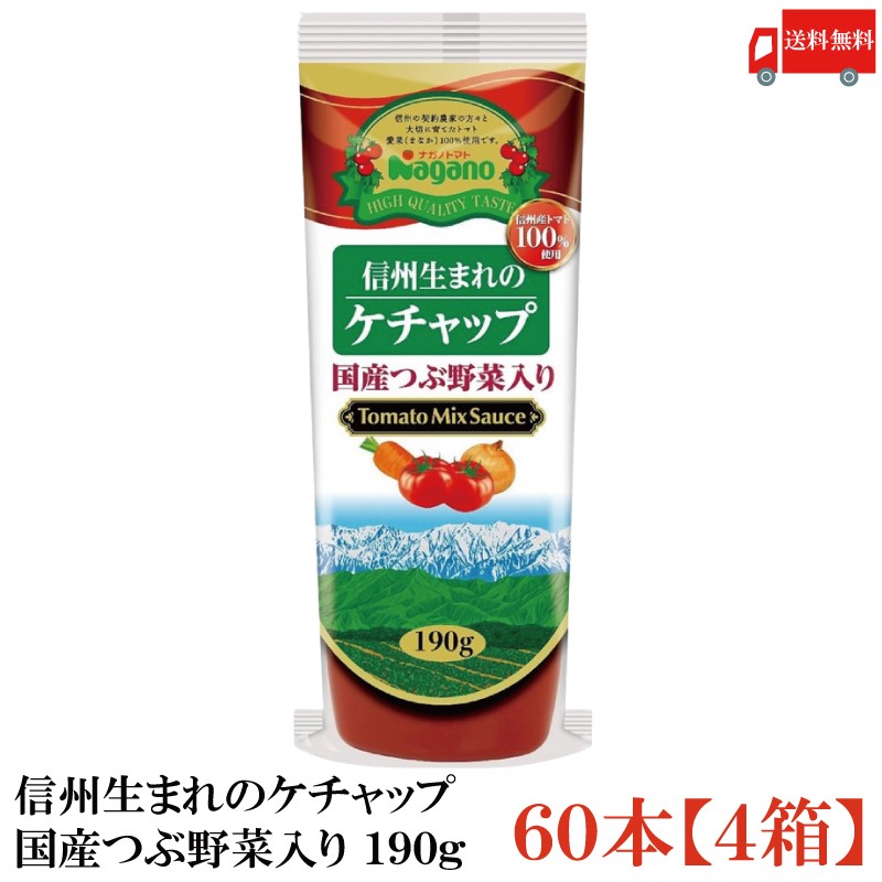 ナガノトマト 信州生まれのケチャップ 国産つぶ野菜入り 190g ×60個 【4箱】 送料無料
