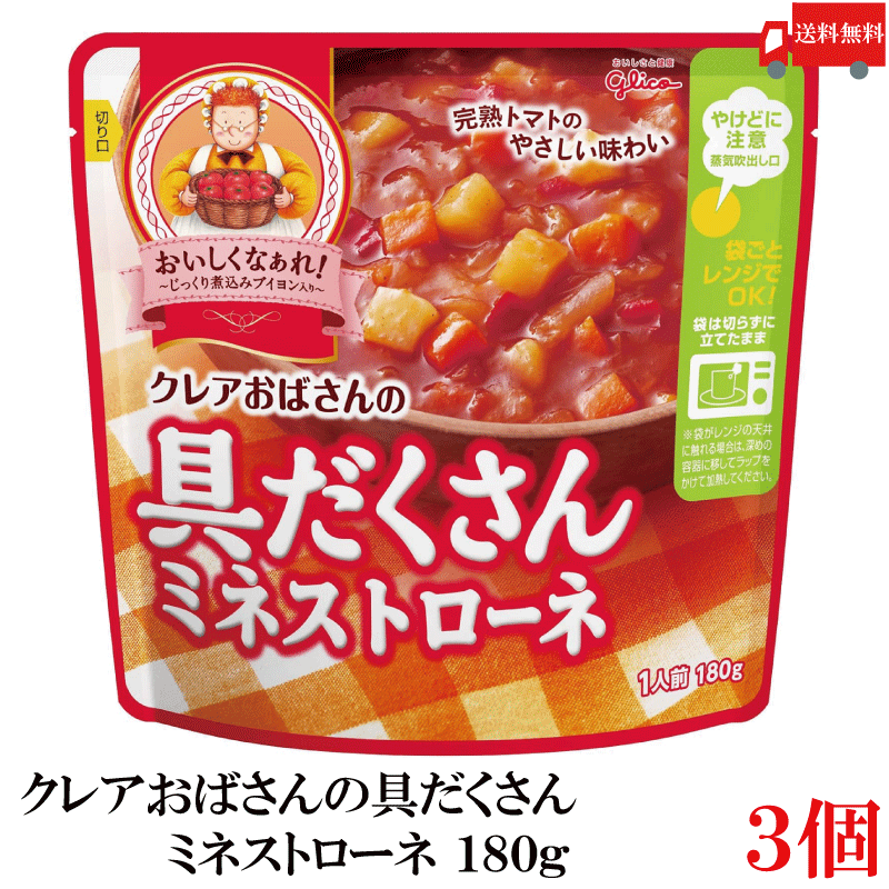 送料無料 江崎グリコ クレアおばさんの具だくさん ミネストローネ 180g ×3個