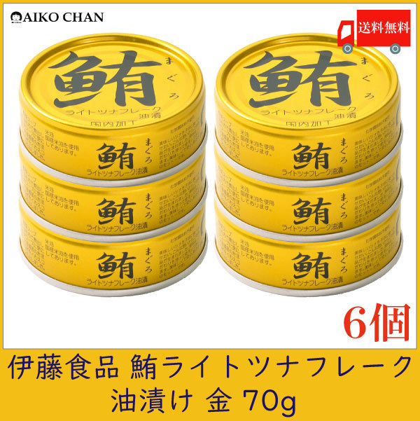 伊藤食品 ツナ缶 鮪 ライトツナフレーク 油漬け 金 70g ×6個 送料無料