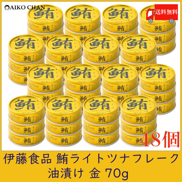 伊藤食品 ツナ缶 鮪 ライトツナフレーク 油漬け 金 70g ×48個 送料無料