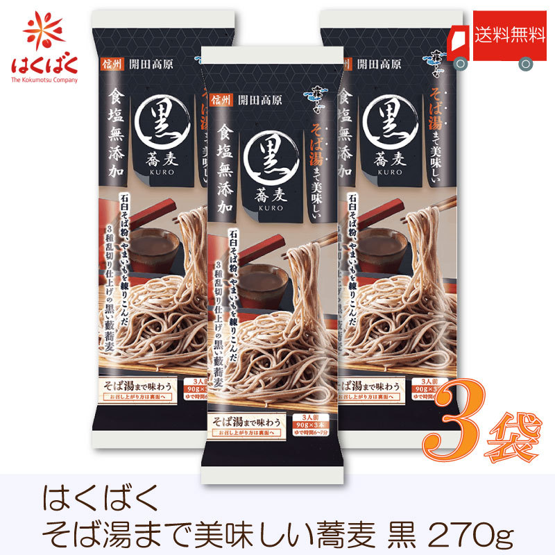 はくばく そば 霧しな そば湯まで美味しい蕎麦 黒 270g ×3袋 食塩無添加 送料無料